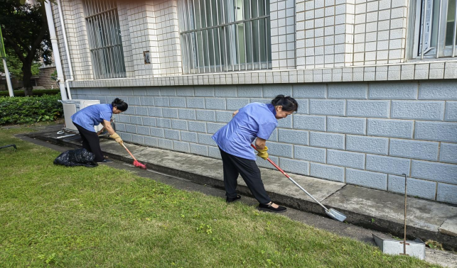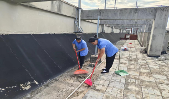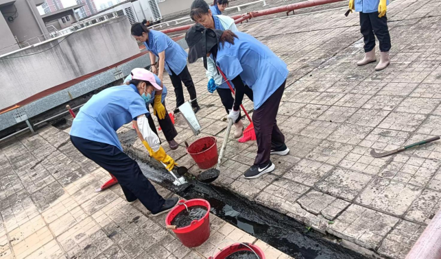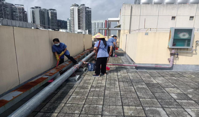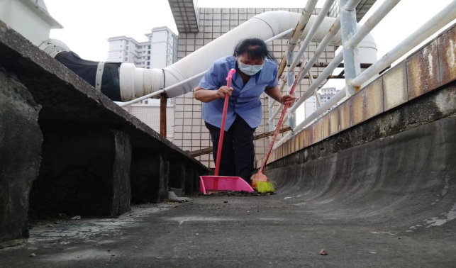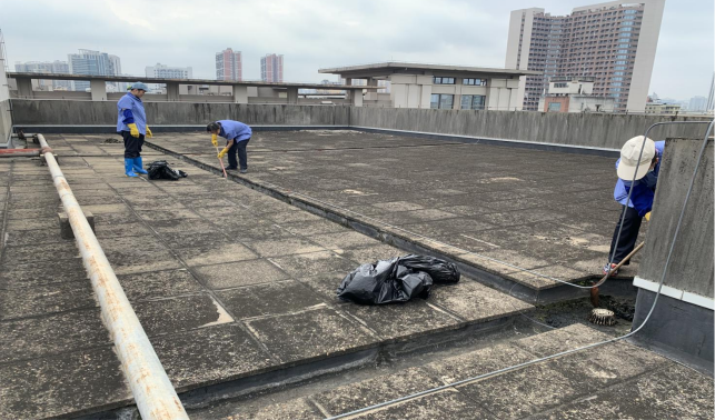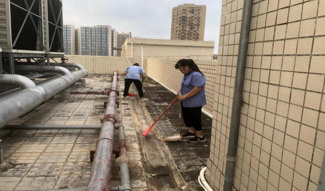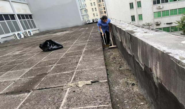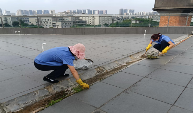 对语言中心、二教、三教、六教、十教、十一教、十五教、十六教和研究生院教室等教学楼宇进行日常卫生保洁服务工作,本周清理公共楼宇外围排水设施43次,清理公共楼宇天台排水设施40处。