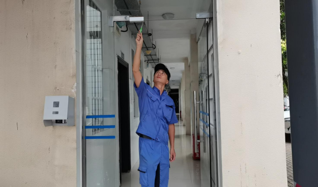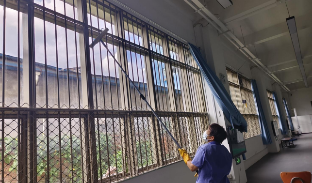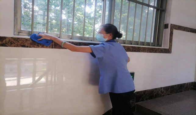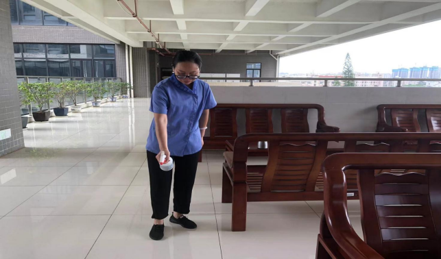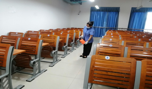 对公共教学楼宇的楼梯、走廊、门把手、课桌椅、电脑键盘、鼠标、水龙头、楼梯扶手、电梯间及按钮等高频接触表面进行重点杀菌消毒423次。