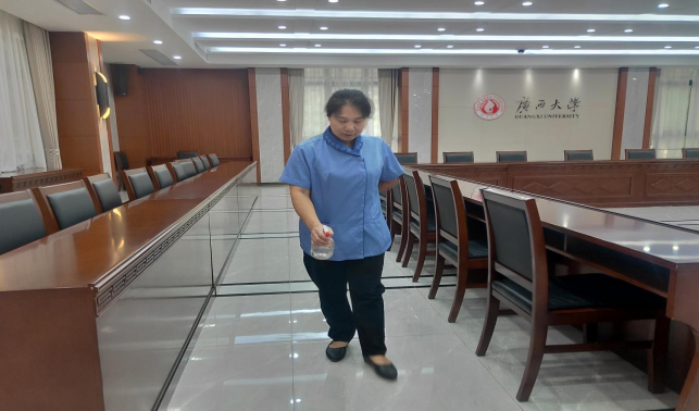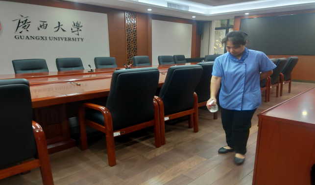 对君武馆、财务处、办公楼、大学生活动中心、保卫处等办公楼宇进行日常卫生保洁等服务工作。