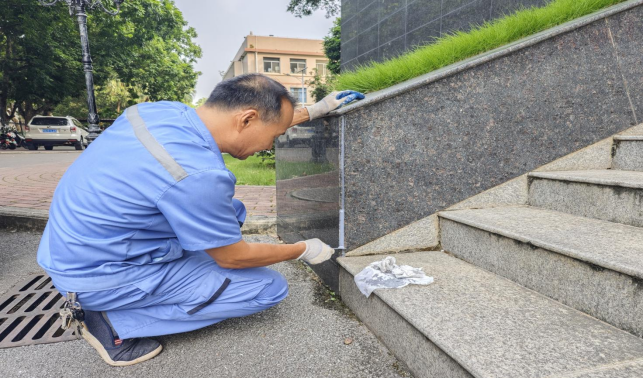 修补中国-东盟经济学院门口破损瓷砖