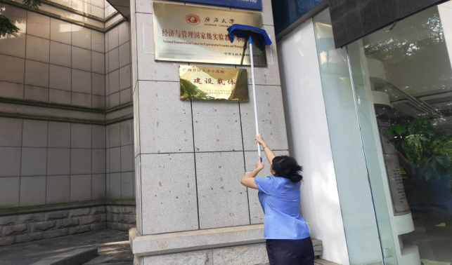 对中国-东盟经济学院、物理学院、综合实验大楼等26个学院进行日常卫生保洁工作。