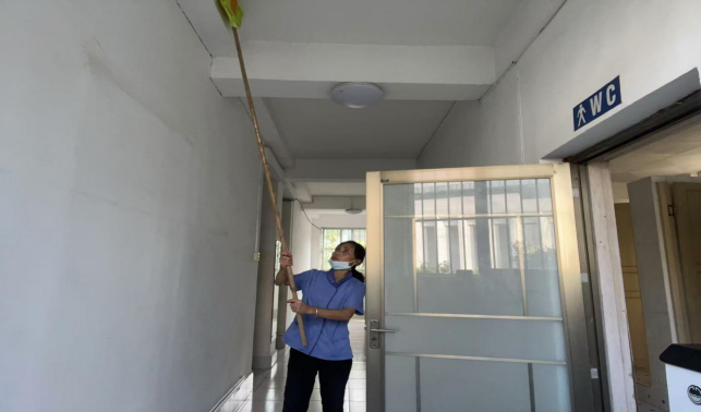对公共教学楼宇的楼梯、走廊、门把手、课桌椅、电脑键盘、鼠标、水龙头、楼梯扶手、电梯间及按钮等高频接触表面进行重点杀菌消毒485次。
