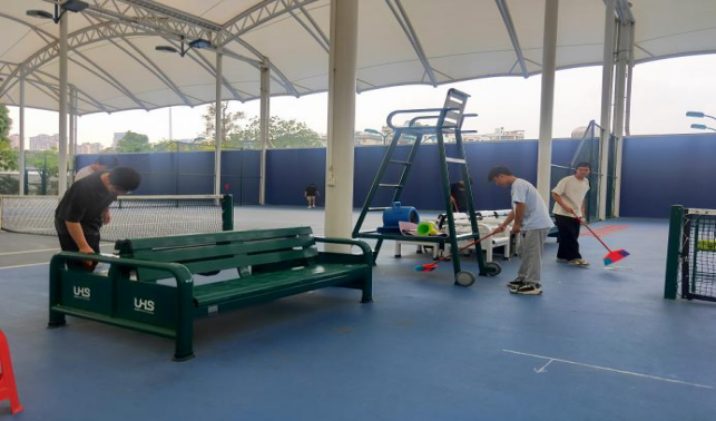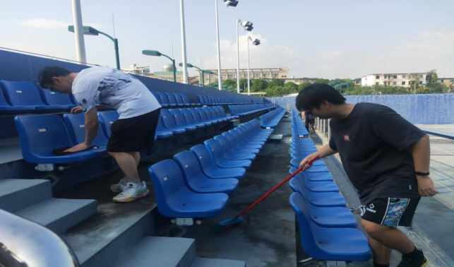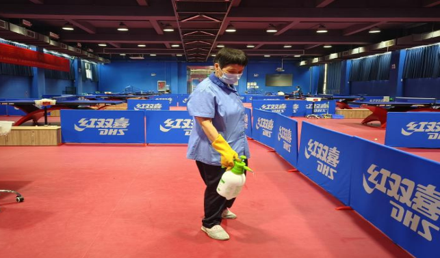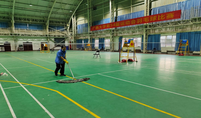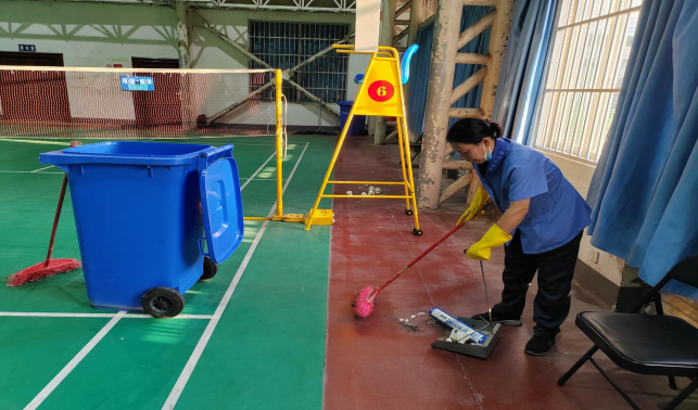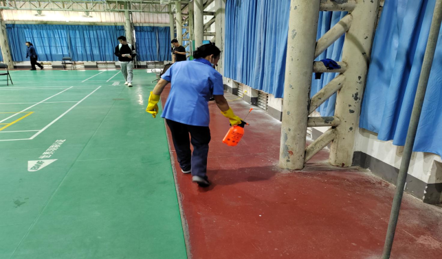 太阳集团tyc138第54届运动会羽毛球比赛现场环境卫生清洁和消毒保障工作