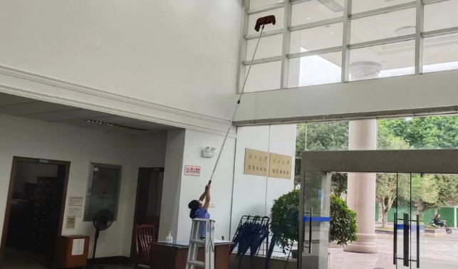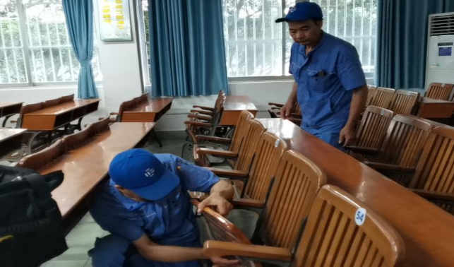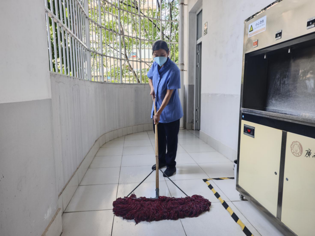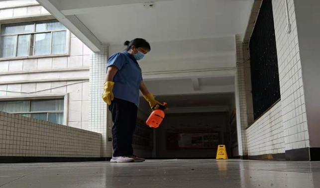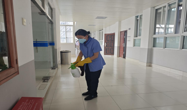 对公共教学楼宇的楼梯、走廊、门把手、课桌椅、电脑键盘、鼠标、水龙头、楼梯扶手、电梯间及按钮等高频接触表面进行重点杀菌消毒497次。