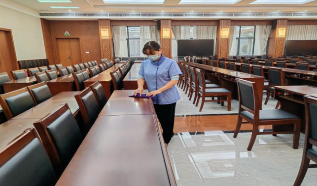 做好会场布置、会议前后保洁及会务各项服务共计28场,其中重要接待7场。