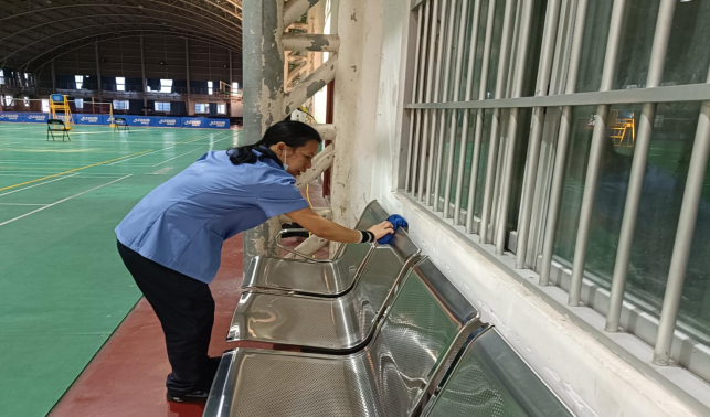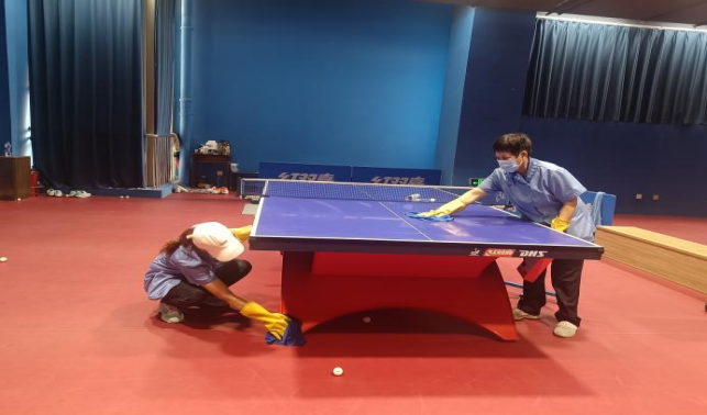 太阳集团tyc138第54届运动会羽毛球比赛现场环境卫生清洁和消毒保障工作