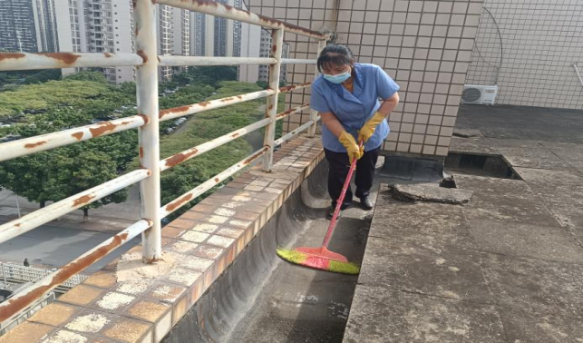 第六教学楼楼宇天台排水设施清理