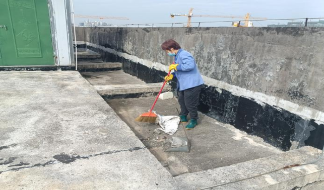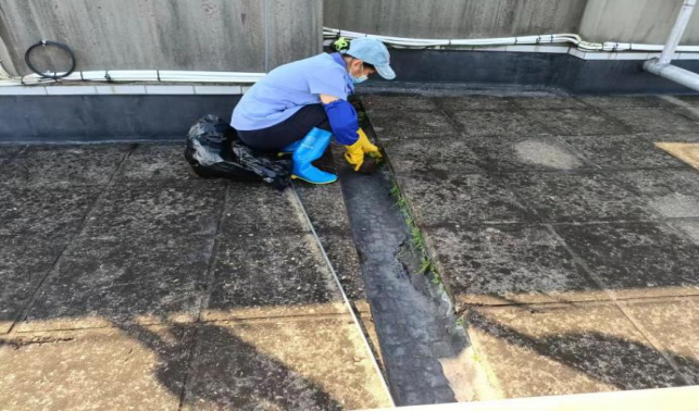 东体育馆楼宇天台排水设施清理