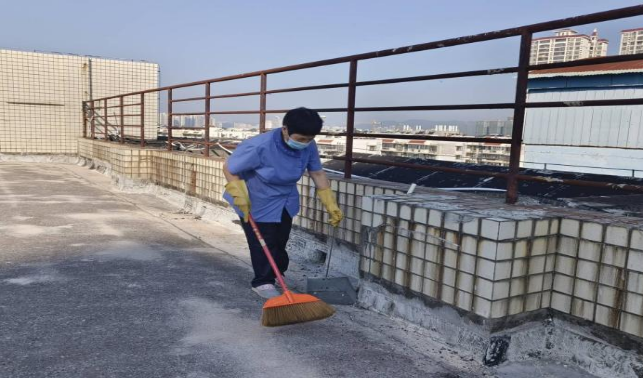 对语言中心、二教、三教、六教、十教、十一教、十五教、十六教和研究生院教室等教学楼宇进行日常卫生保洁服务工作,本周清理公共楼宇外围排水设施44次,清理公共楼宇天台排水设施40处。