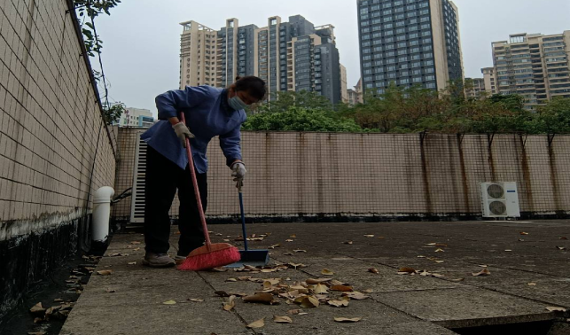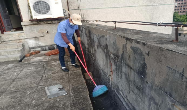 对语言中心、二教、三教、六教、十教、十一教、十五教、十六教和研究生院教室等教学楼宇进行日常卫生保洁服务工作,本周清理公共楼宇外围排水设施45次,清理公共楼宇天台排水设施43处。