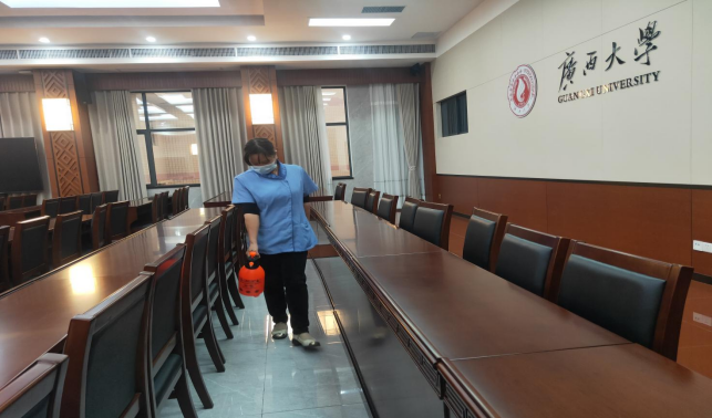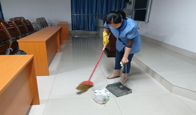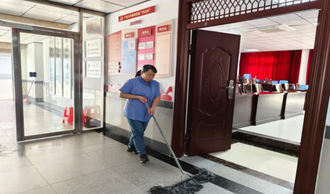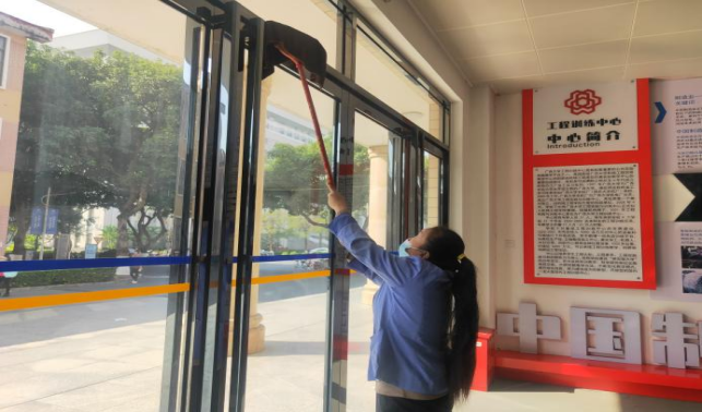 对中国-东盟经济学院、海洋学院、机械学院训练中心、化学化工学院等26个学院进行日常卫生保洁工作。