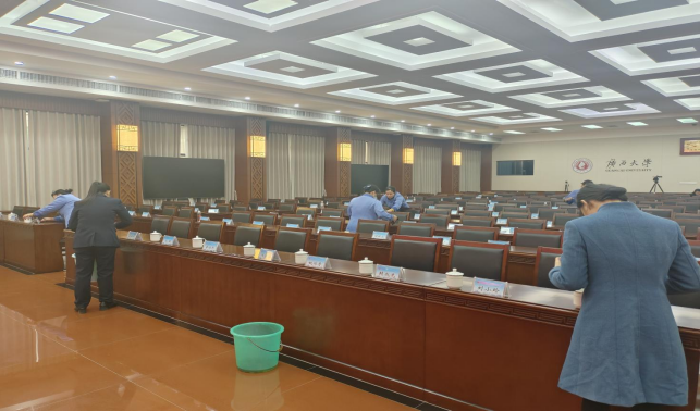 做好会场布置、会议前后保洁及会务各项服务共计39场,其中重要接待17场。