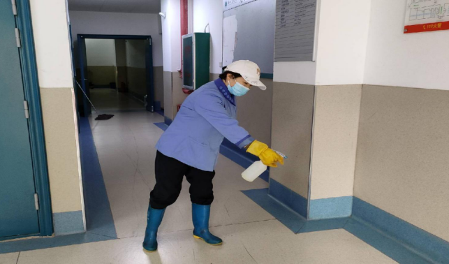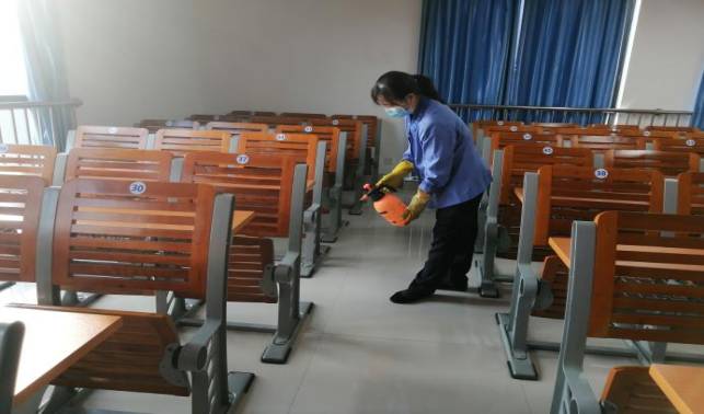 对公共教学楼宇的楼梯、走廊、门把手、课桌椅、电脑键盘、鼠标、水龙头、楼梯扶手、电梯间及按钮等高频接触表面进行重点杀菌消毒579次。