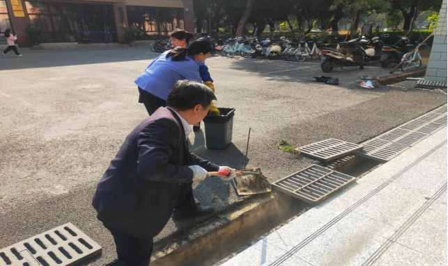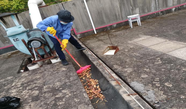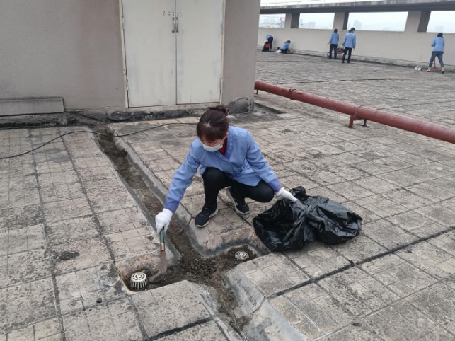 对语言中心、二教、三教、六教、十教、十一教、十五教、十六教和研究生院教室等教学楼宇进行日常卫生保洁服务工作,本周清理公共楼宇外围排水设施52次,清理公共楼宇天台排水设施44处。