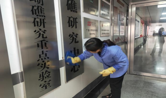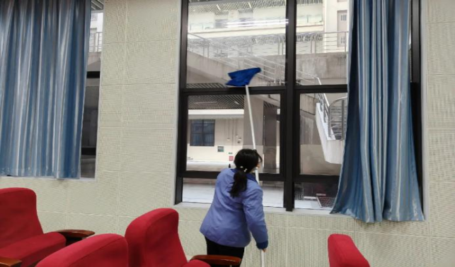 对君武馆、财务处、办公楼、大学生活动中心、保卫处等办公楼宇进行日常卫生保洁等服务工作。
