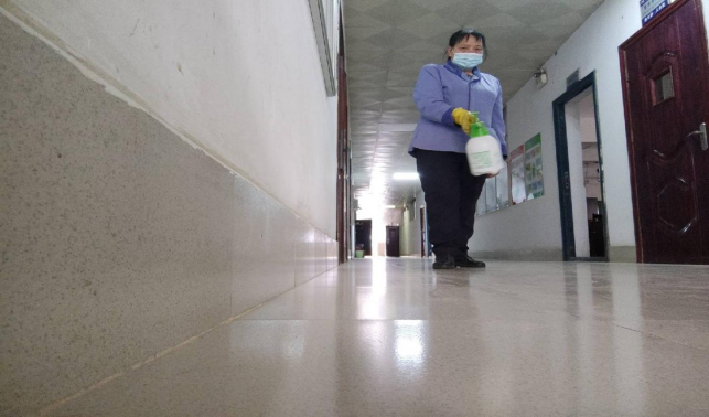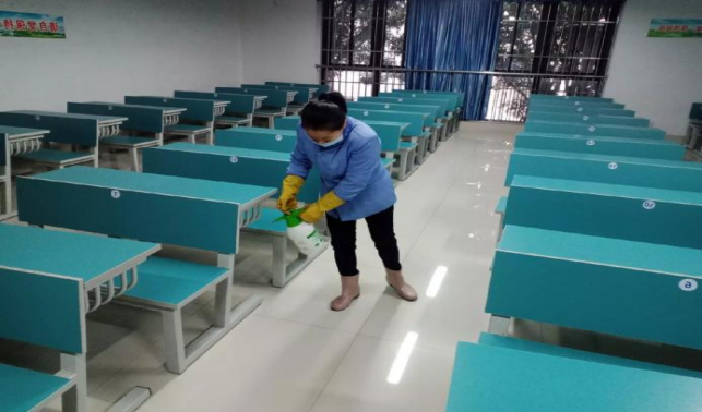 对公共教学楼宇的楼梯、走廊、门把手、课桌椅、电脑键盘、鼠标、水龙头、楼梯扶手、电梯间及按钮等高频接触表面进行重点杀菌消毒488次。