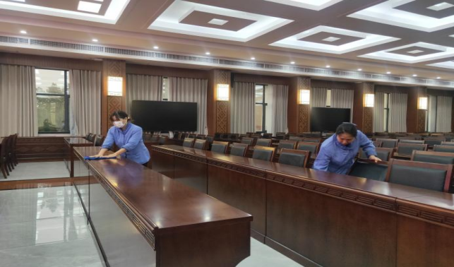 做好会场布置、会议前后保洁及会务各项服务共计34场,其中重要接待14场。