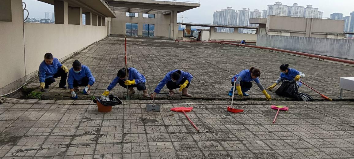 对语言中心、二教、三教、六教、十教、十一教、十五教、十六教和研究生院教室等教学楼宇进行日常卫生保洁服务工作,本周清理公共楼宇外围排水设施50次,清理公共楼宇天台排水设施43处。