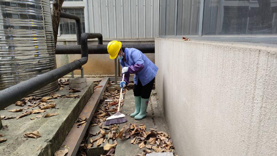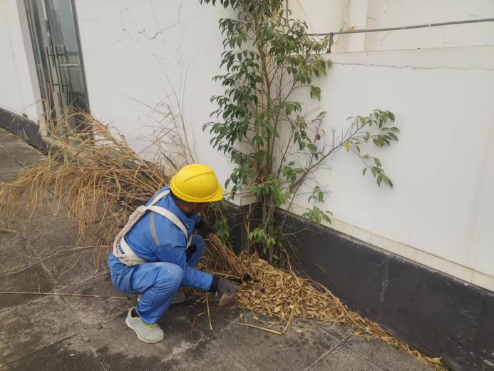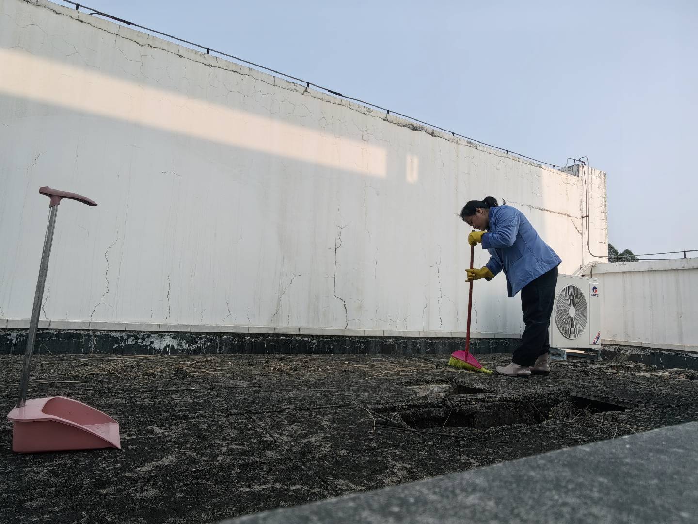 甘蔗生物育种研究中心楼宇天台排水设施清理