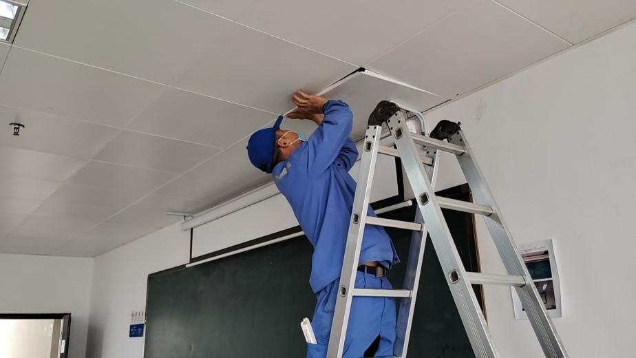 对学校公共设施进行日常巡查、维护,对师生报修问题及时维修、抢修,确保公共设施设备正常使用。本周共接单456单,其中电类169单,给水类34单,门窗类37单,排水类51单,疏通类53单,房屋本体类43单,桌椅类36单,其他类33单,完成415单。