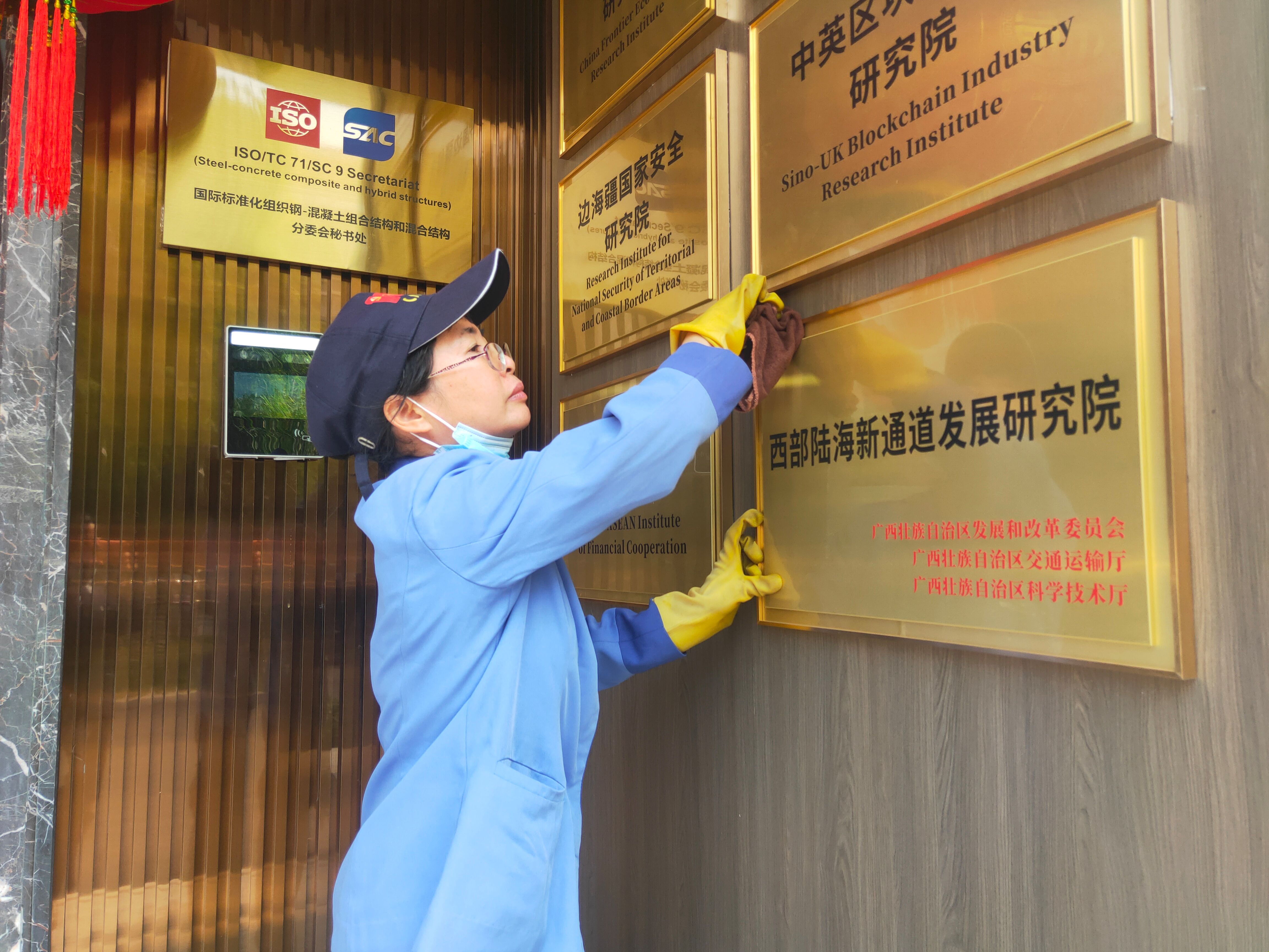 对中国-东盟研究、海洋学院、土木学院、化学化工学院、甘蔗生物育种研究中心、机械学院、医学院、环境学院等26个学院进行日常卫生保洁工作。