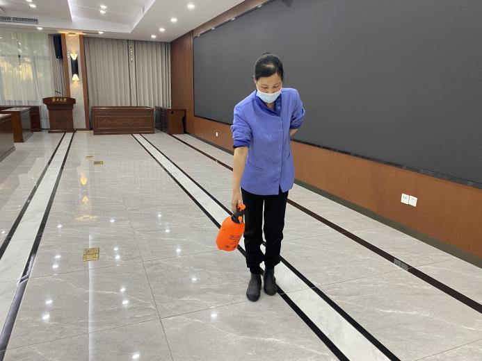 对公共教学楼宇的楼梯、走廊、门把手、课桌椅、电脑键盘、鼠标、水龙头、楼梯扶手、电梯间及按钮等高频接触表面进行重点杀菌消毒547次。