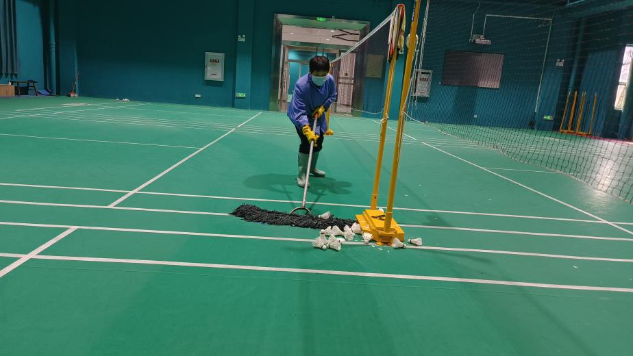 大学生在网球中心开展卫生保洁工作(图二)