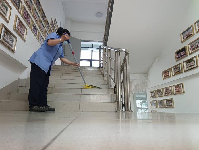 对公共教学楼宇的楼梯、走廊、门把手、课桌椅、电脑键盘、鼠标、水龙头、楼梯扶手、电梯间及按钮等高频接触表面进行重点杀菌消毒540次。