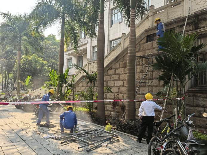 海洋学院一楼东北面外墙维修