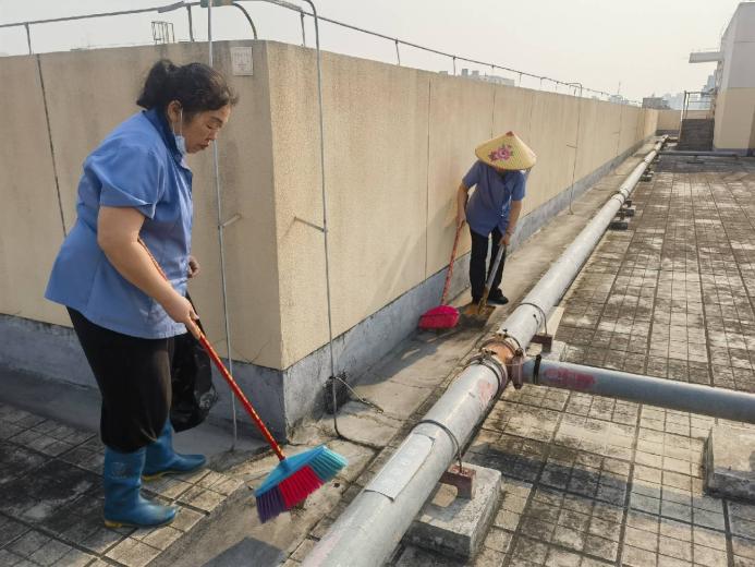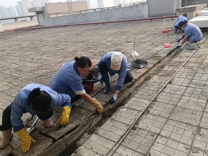 环境学院楼宇天台排水设施清理
