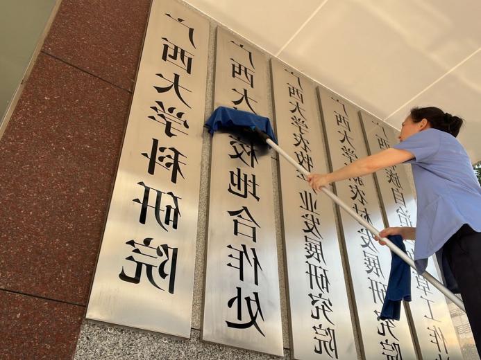 对外国语学院、中国-东盟经济学院、计算机学院、环境学院、甘蔗生物育种研究中心等26个学院进行日常卫生保洁工作。