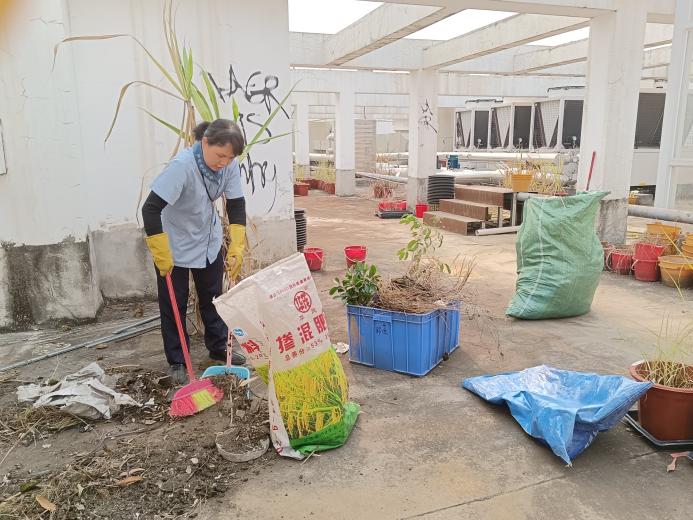 甘蔗生物育种研究中心楼宇天台排水设施清理