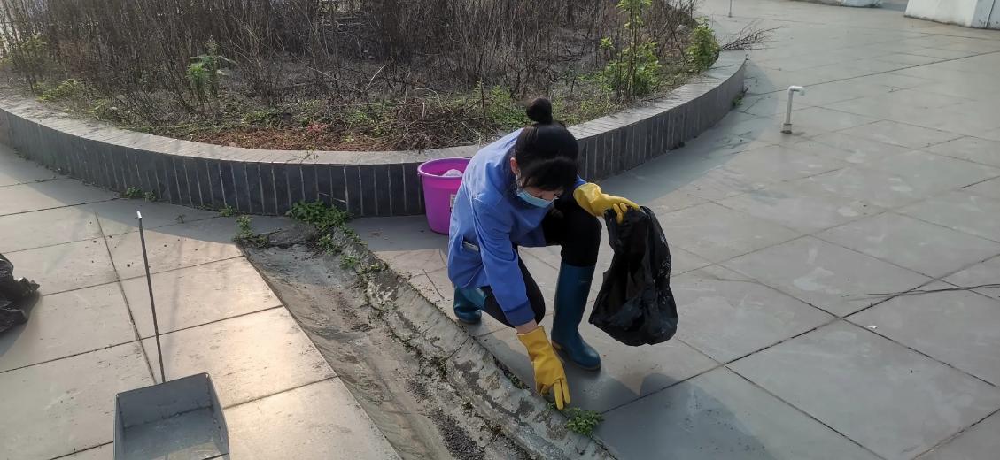 资环材学院楼宇天台排水设施清理