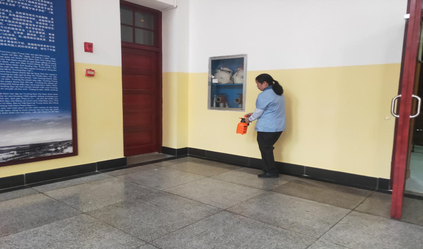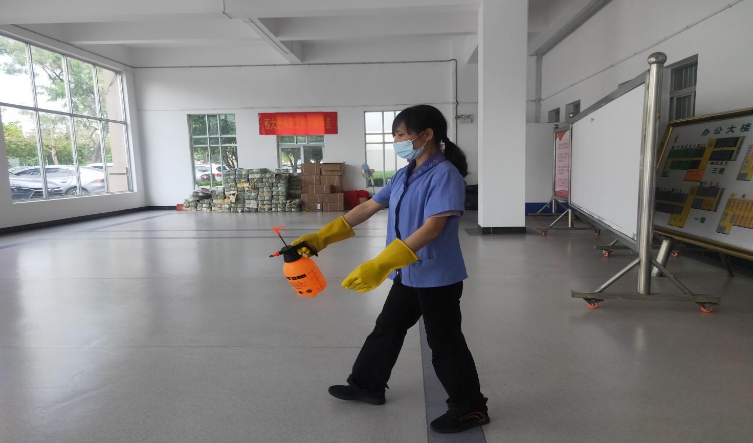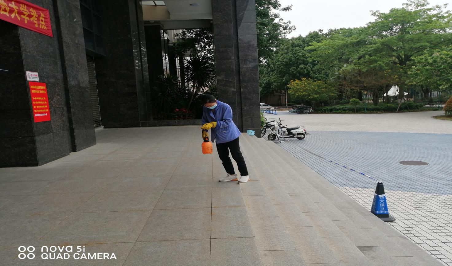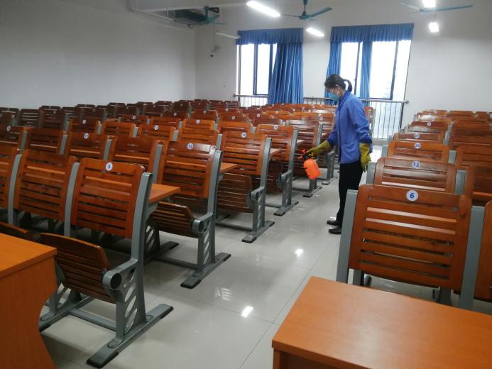 对公共教学楼宇的楼梯、走廊、门把手、课桌椅、电脑键盘、鼠标、水龙头、楼梯扶手、电梯间及按钮等高频接触表面进行重点杀菌消毒439次。