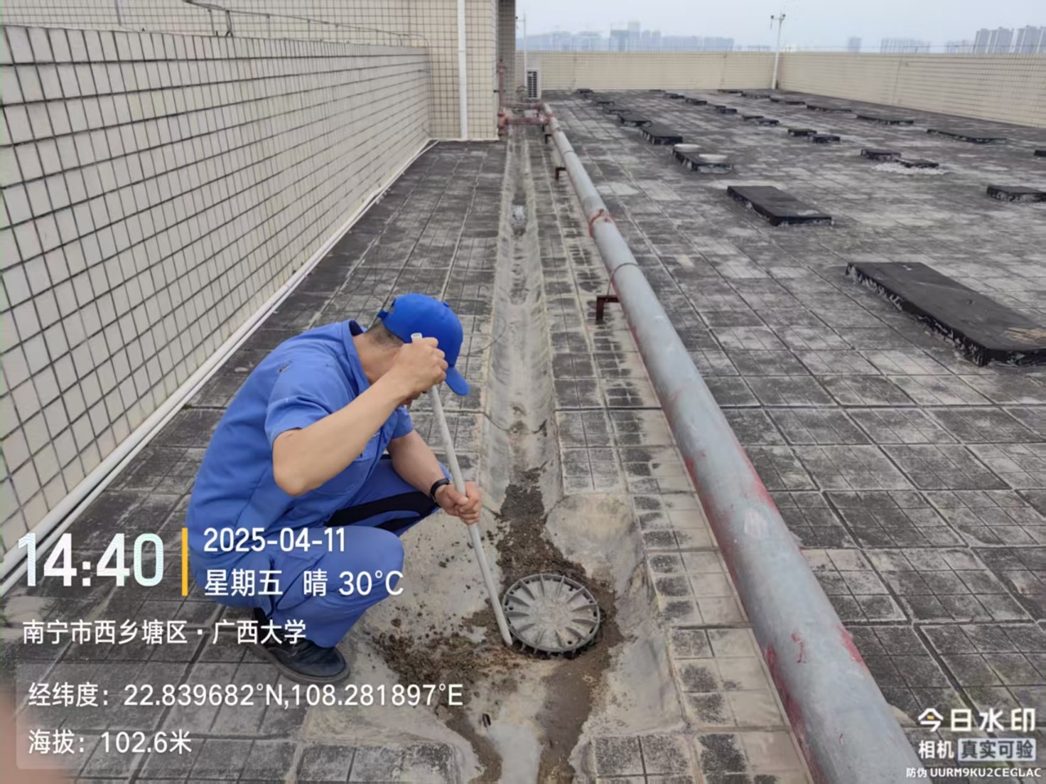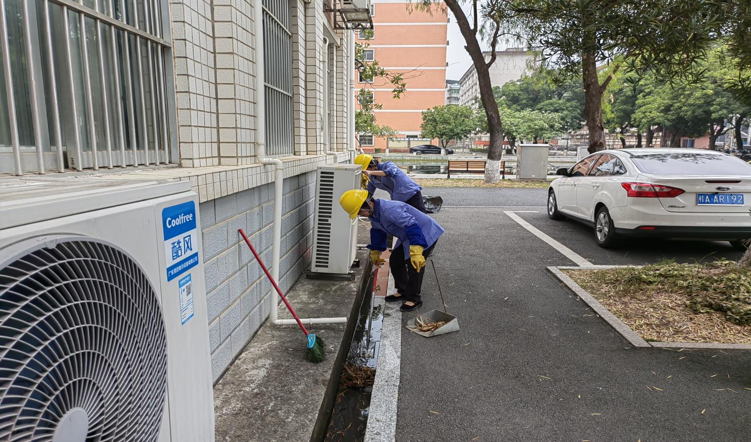 对语言中心、二教、三教、六教、十教、十一教、十五教、十六教和研究生院教室等教学楼宇进行日常卫生保洁服务工作,本周清理公共楼宇外围排水设施48次,清理公共楼宇天台排水设施43处。