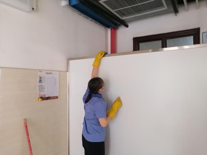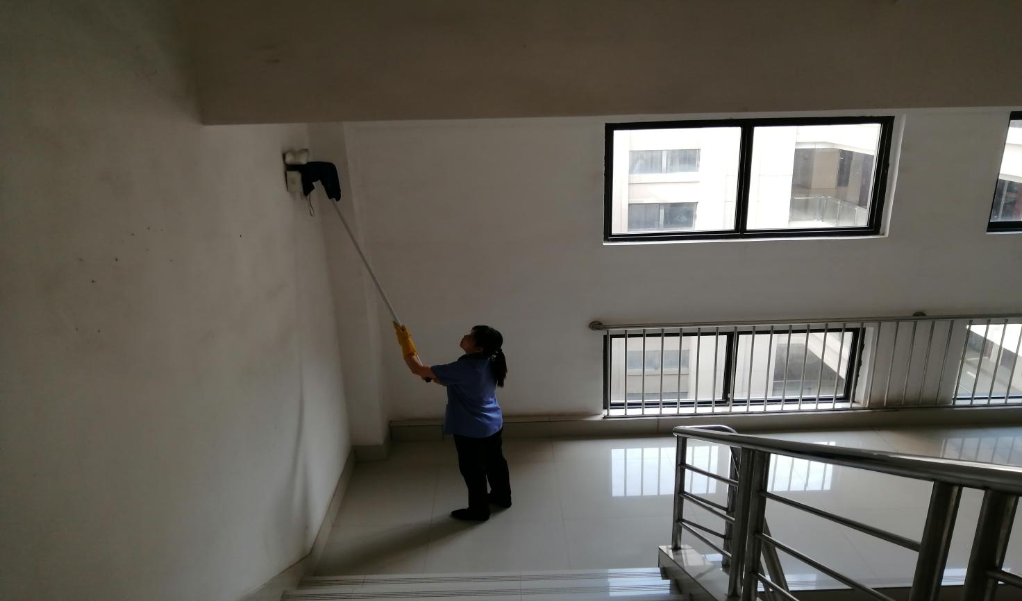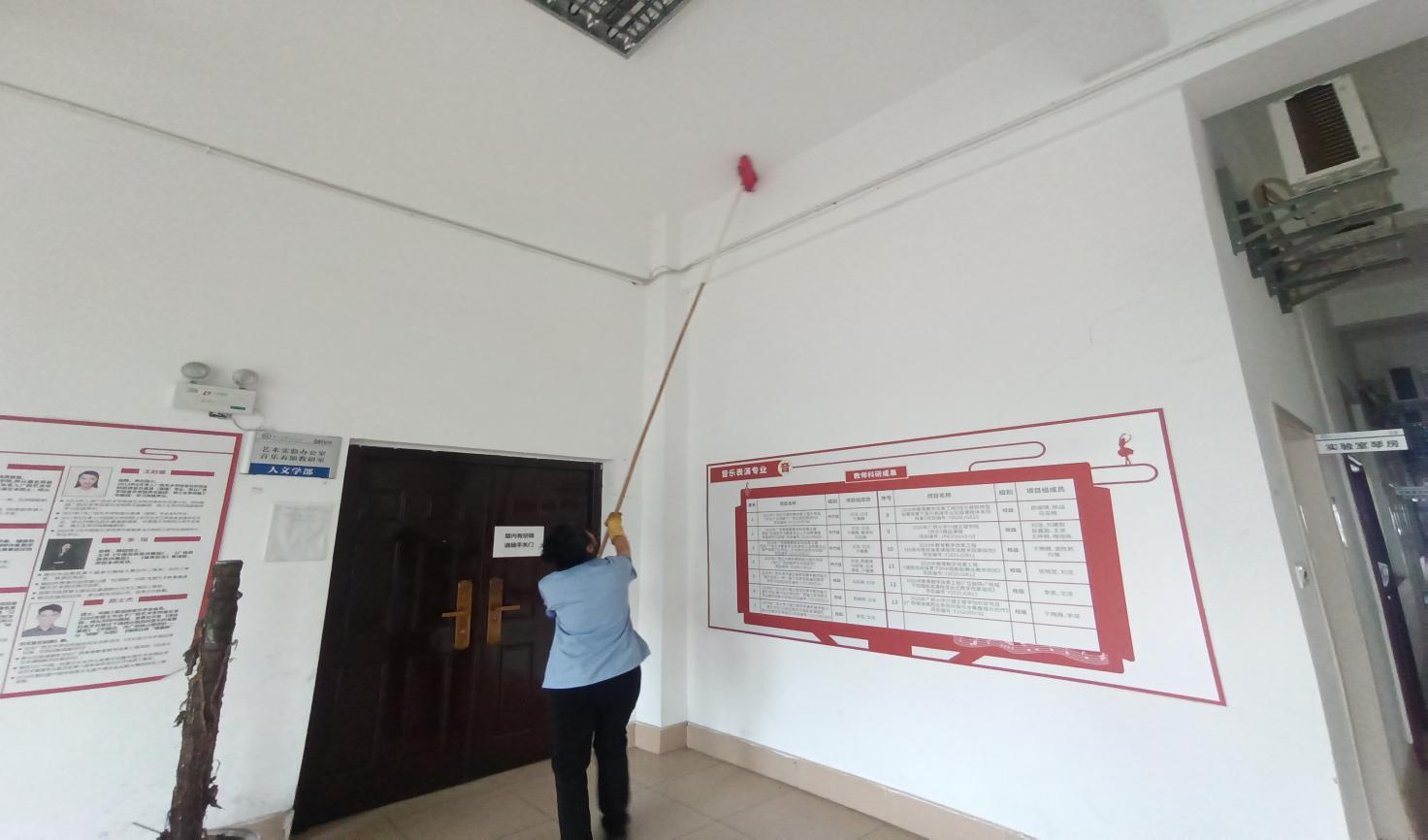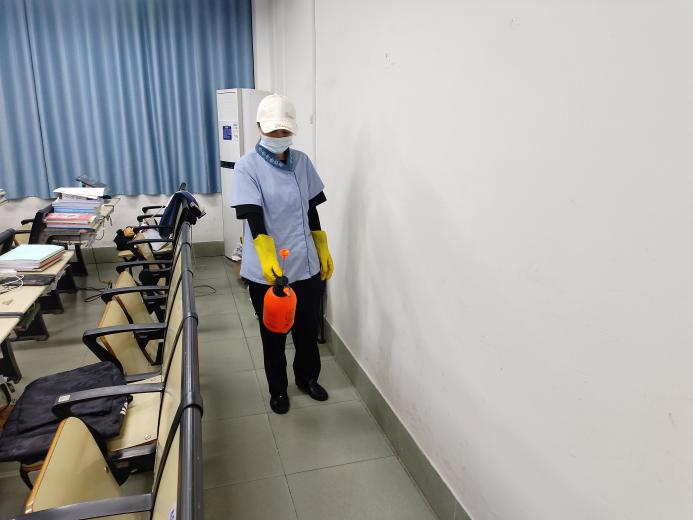 对公共教学楼宇的楼梯、走廊、门把手、课桌椅、电脑键盘、鼠标、水龙头、楼梯扶手、电梯间及按钮等高频接触表面进行重点杀菌消毒538次。