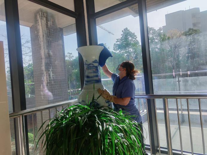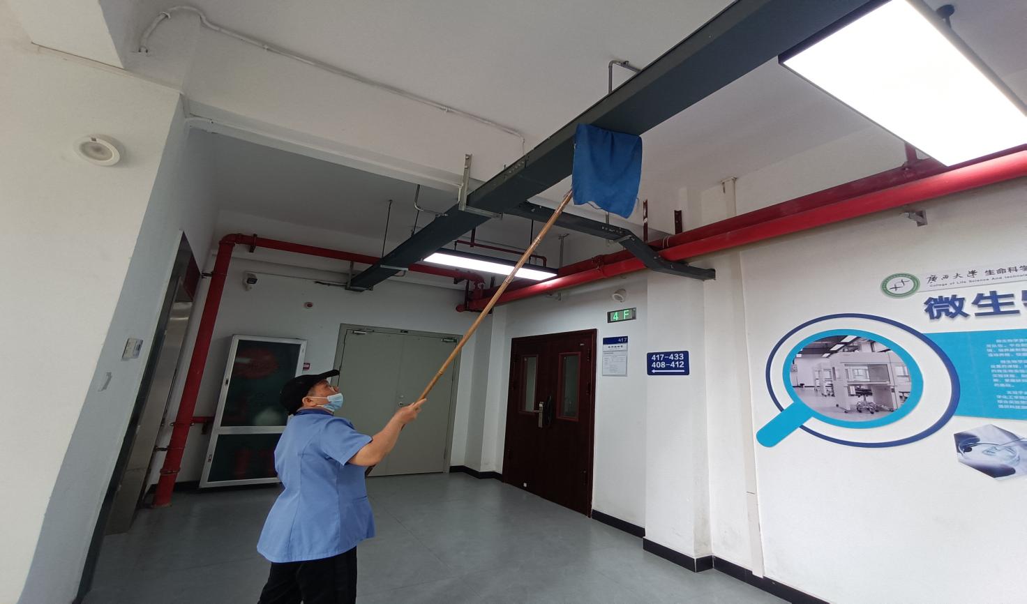 对海洋学院、公共管理学院、物理学院、新闻与传播学院等26个学院进行日常卫生保洁工作。