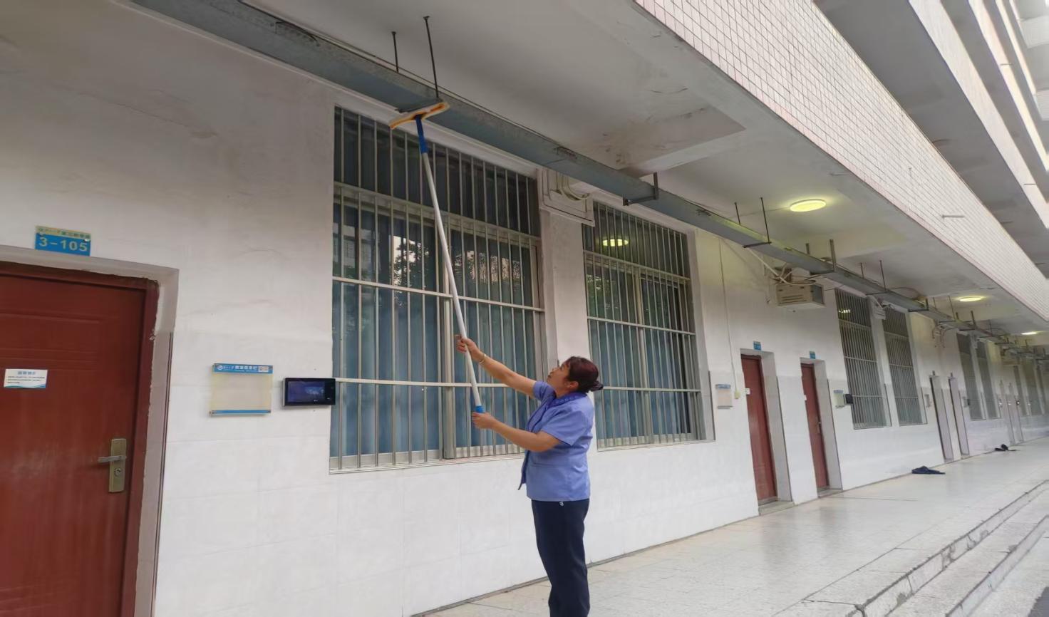 对语言中心、二教、三教、六教、十教、十一教、十五教、十六教和研究生院教室等教学楼宇进行日常卫生保洁服务工作,本周清理公共楼宇外围排水设施46次,清理公共楼宇天台排水设施42处。