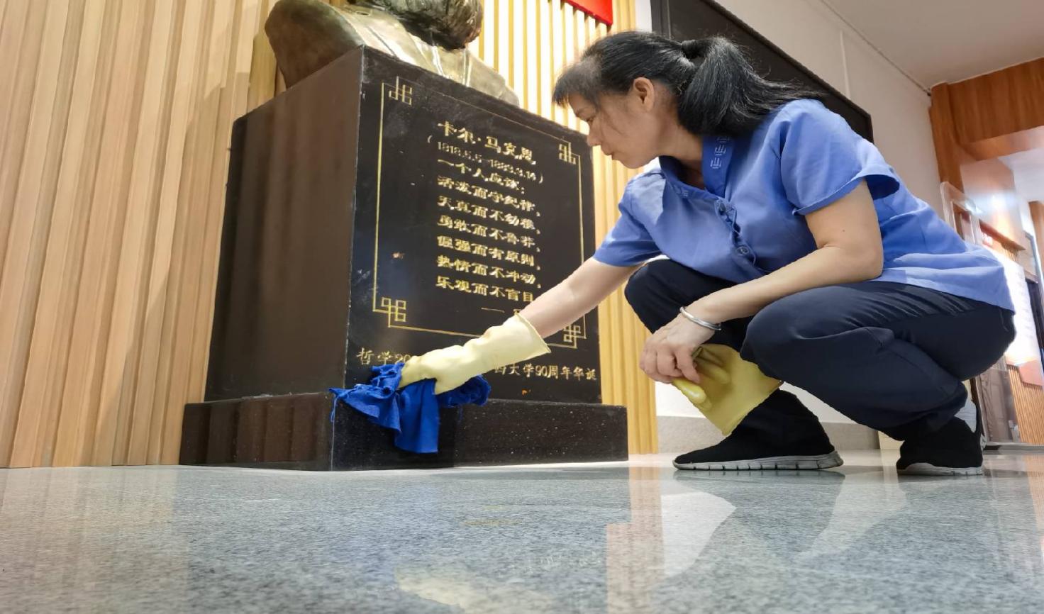 对君武馆、财务处、办公楼、大学生活动中心、保卫处等办公楼宇进行日常卫生保洁等服务工作。