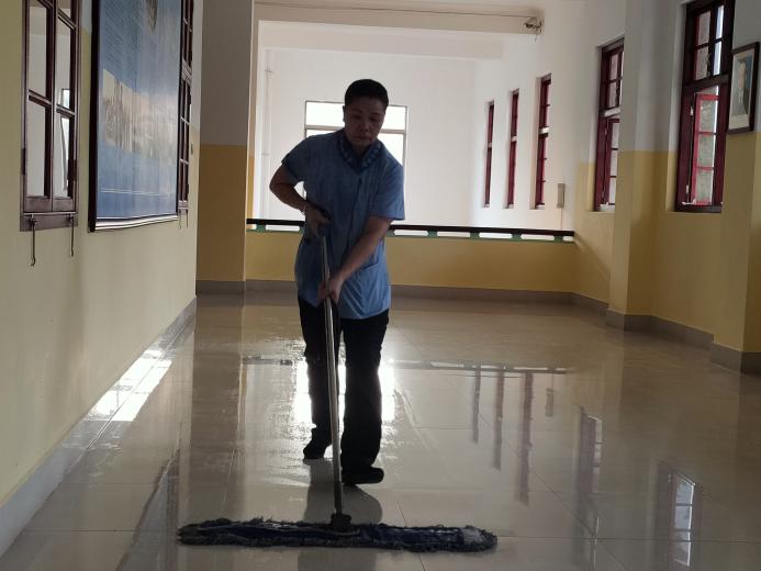 继续教育学院走廊地面污渍专项清洁