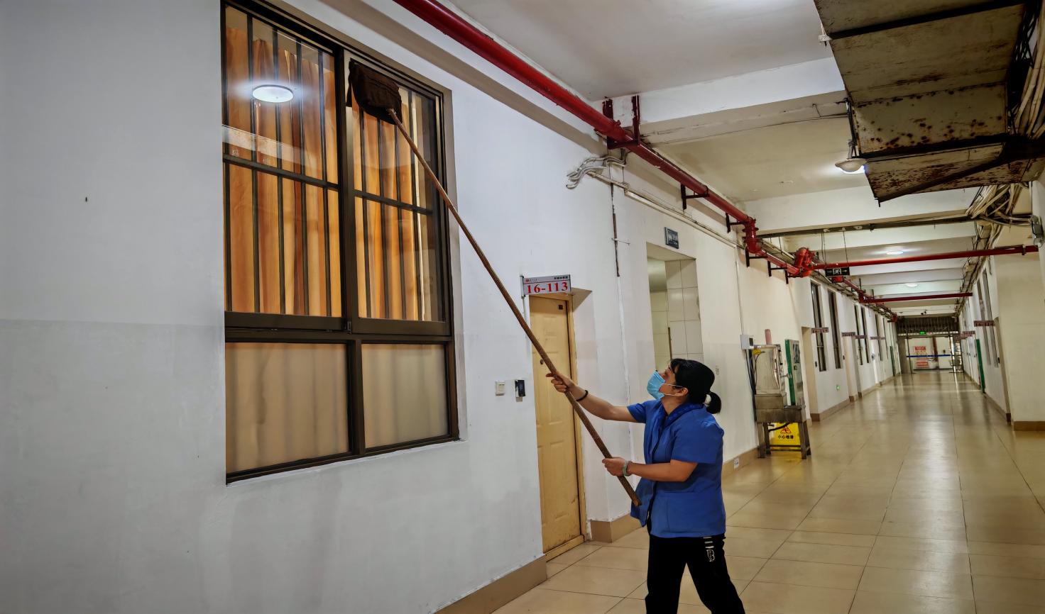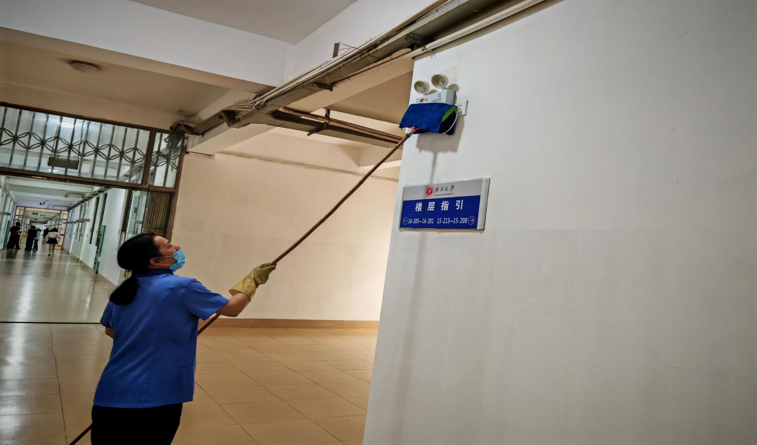 学院楼宇楼栋内蜘蛛网清理