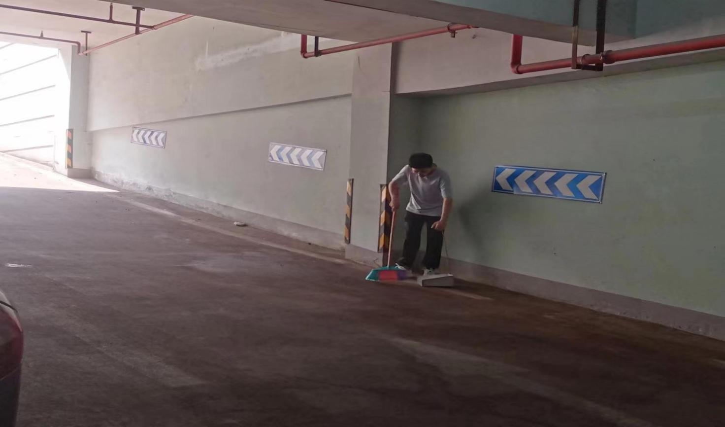 大学生在南大门地下停车场开展卫生保洁工作