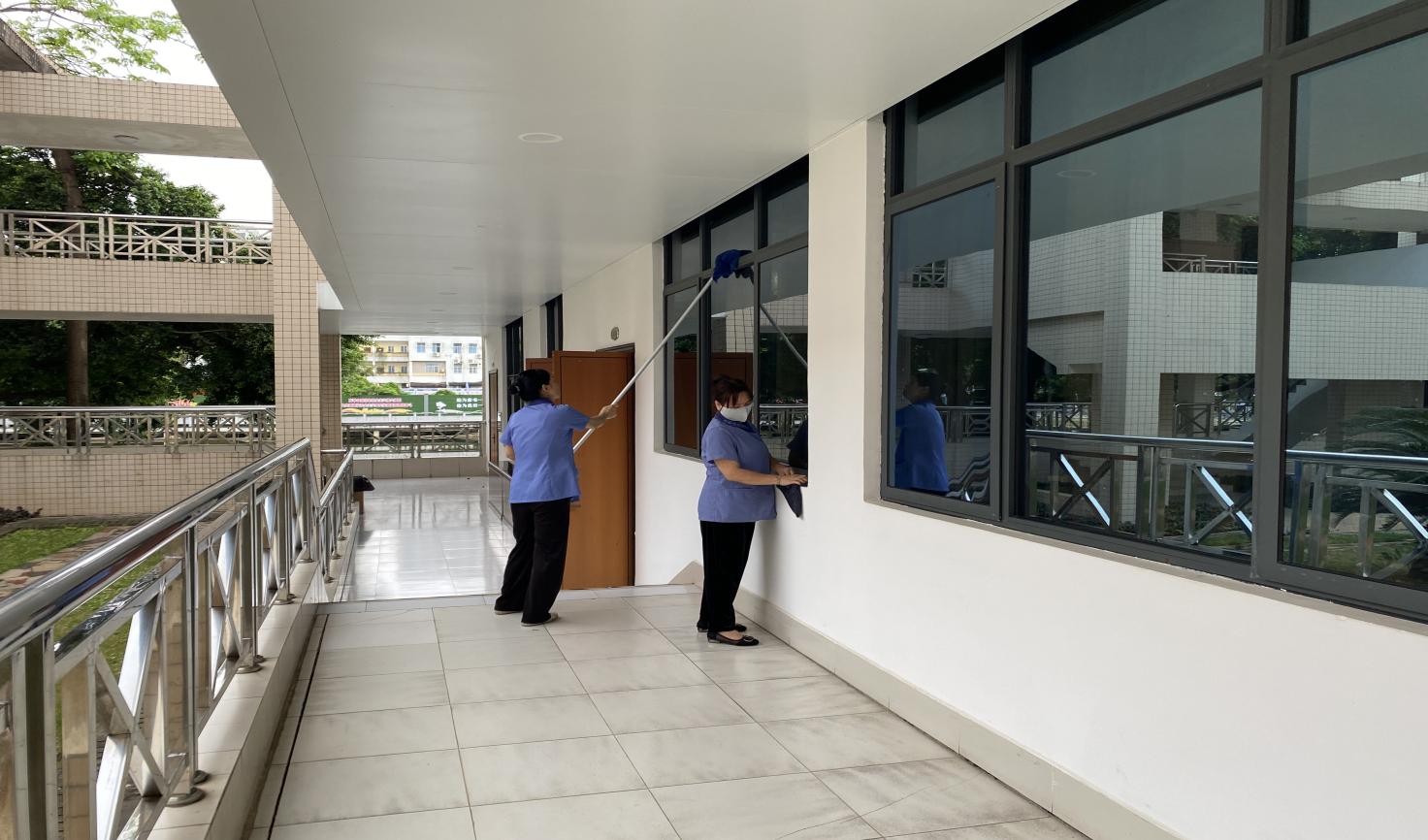 学院楼宇走廊窗台清洁