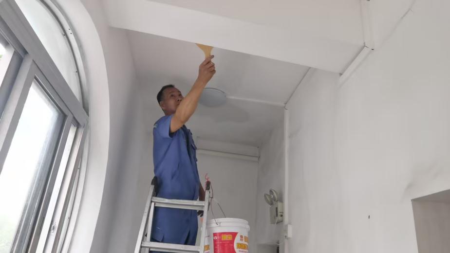 新东园办公楼走廊修补墙面