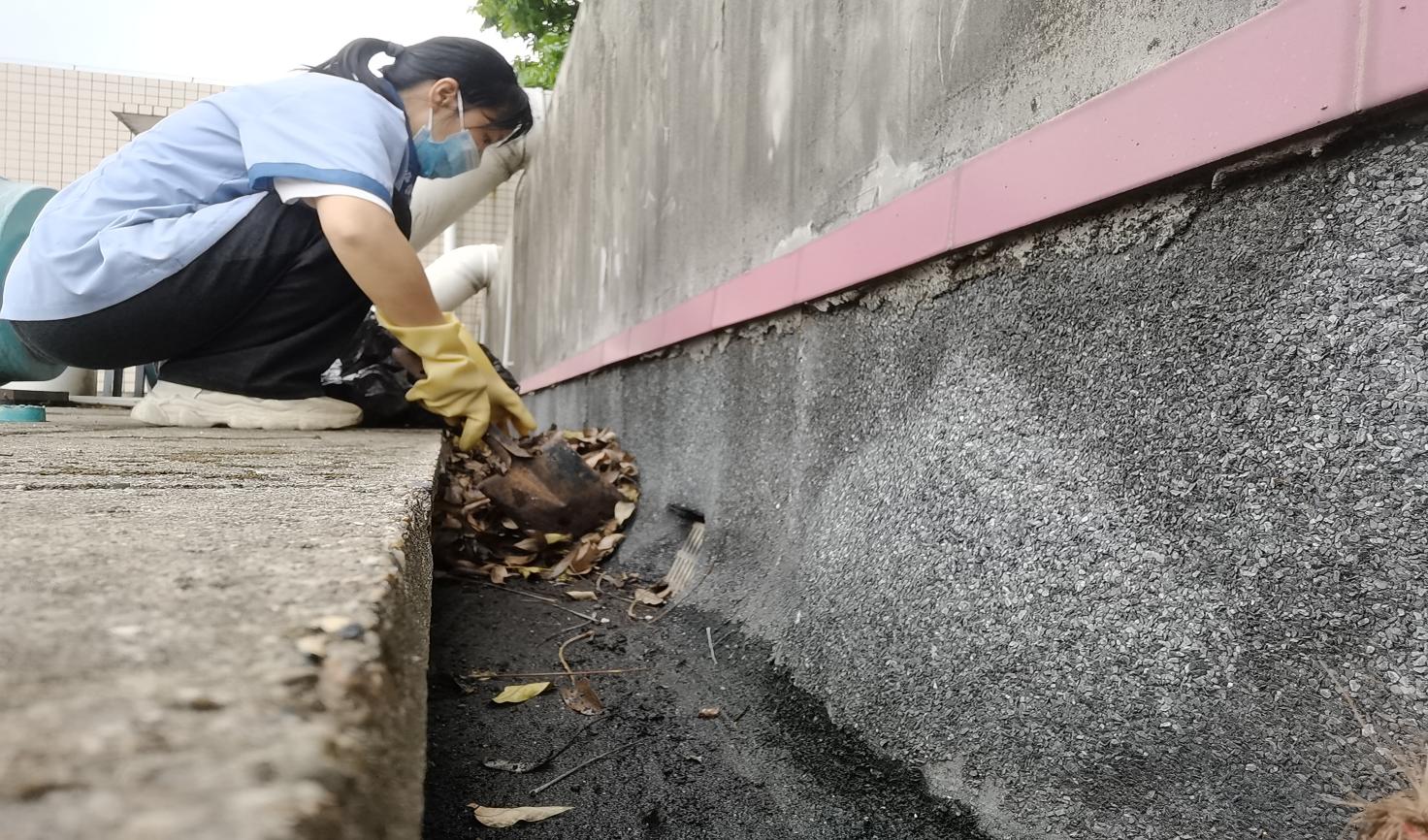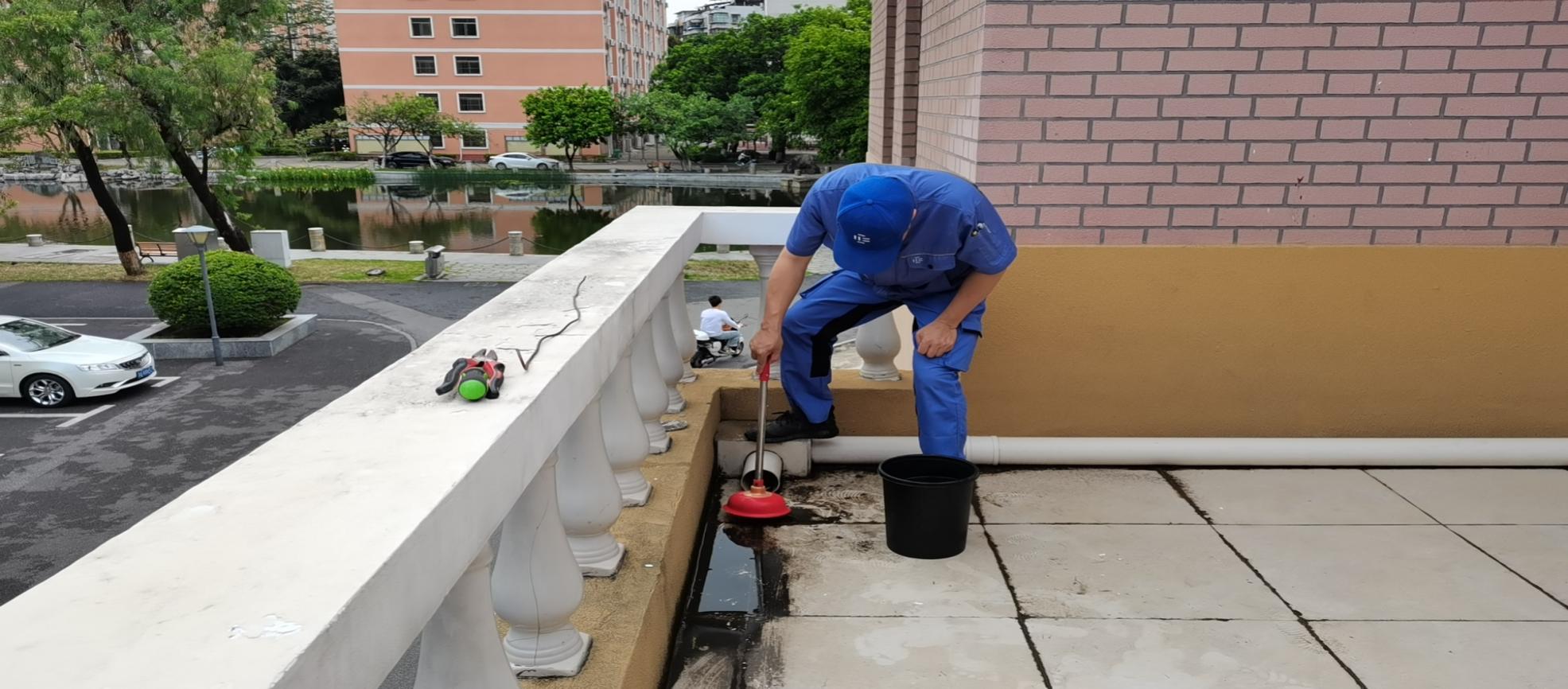 农学院楼宇天台排水设施清理