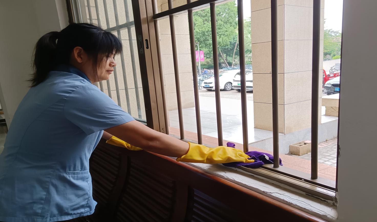 公共教学楼宇窗台清洁