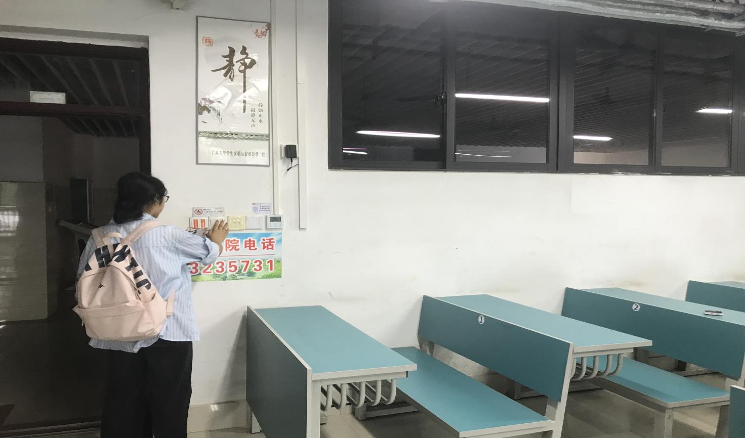 大学生在公共教学楼宇开展节能服务