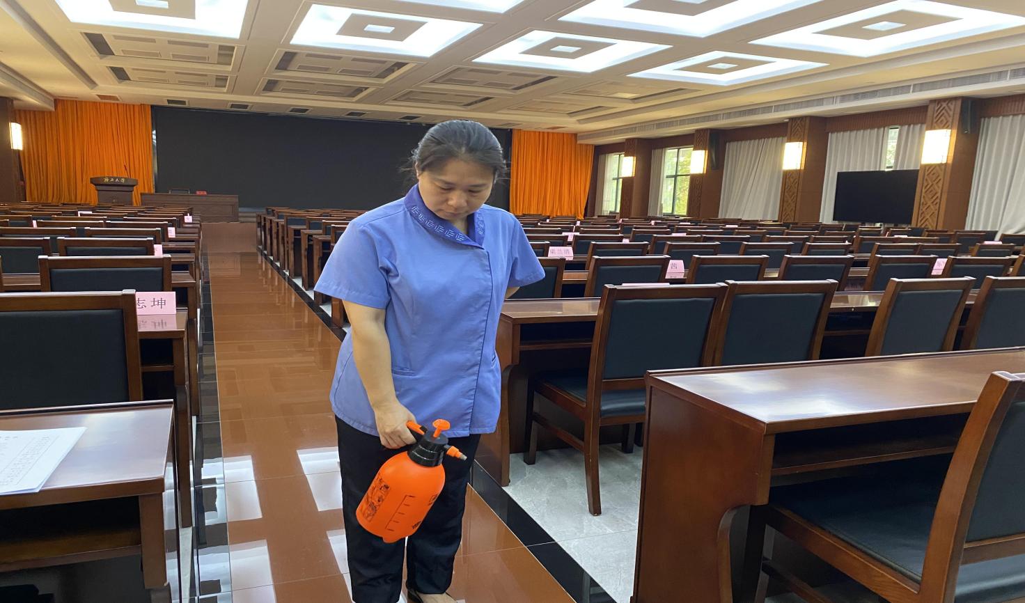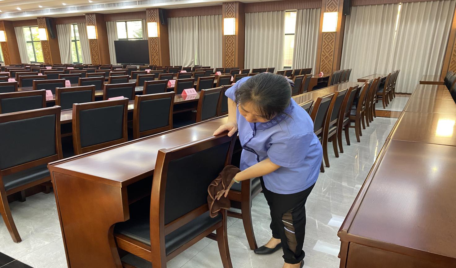 做好大礼堂、君武馆公共会议室会场布置、会议前后保洁及会务各项服务保障共计31场,其中重要接待12场。
