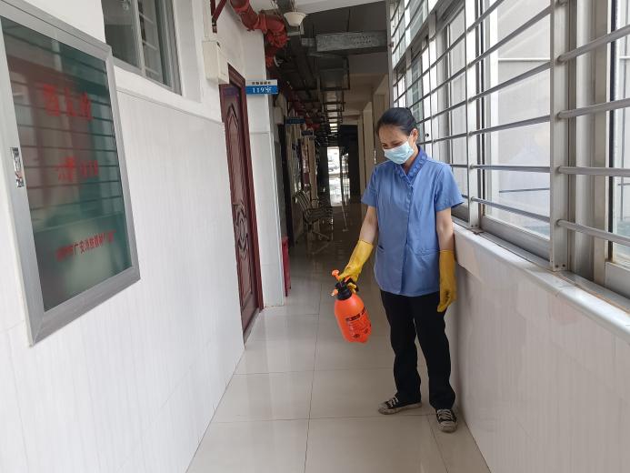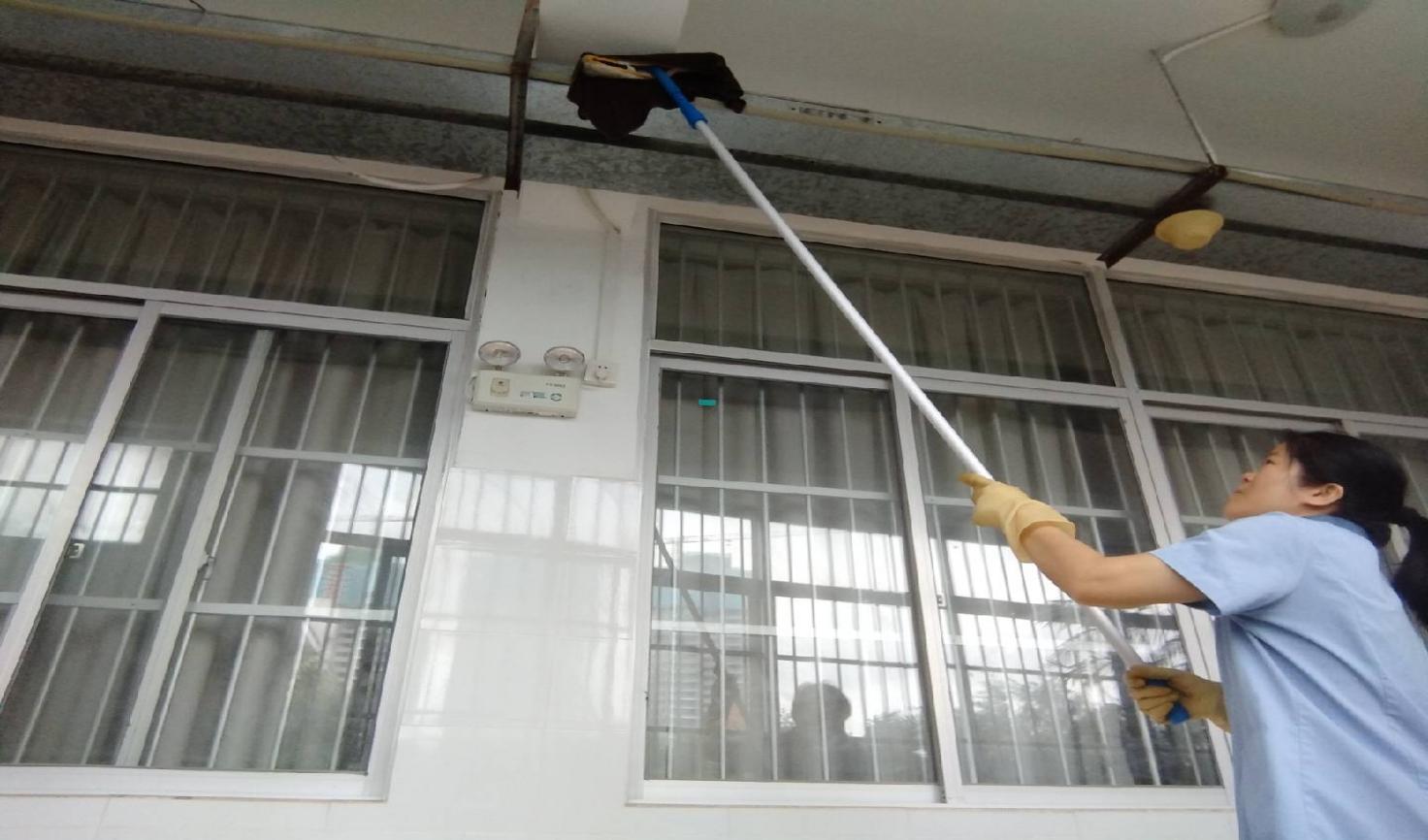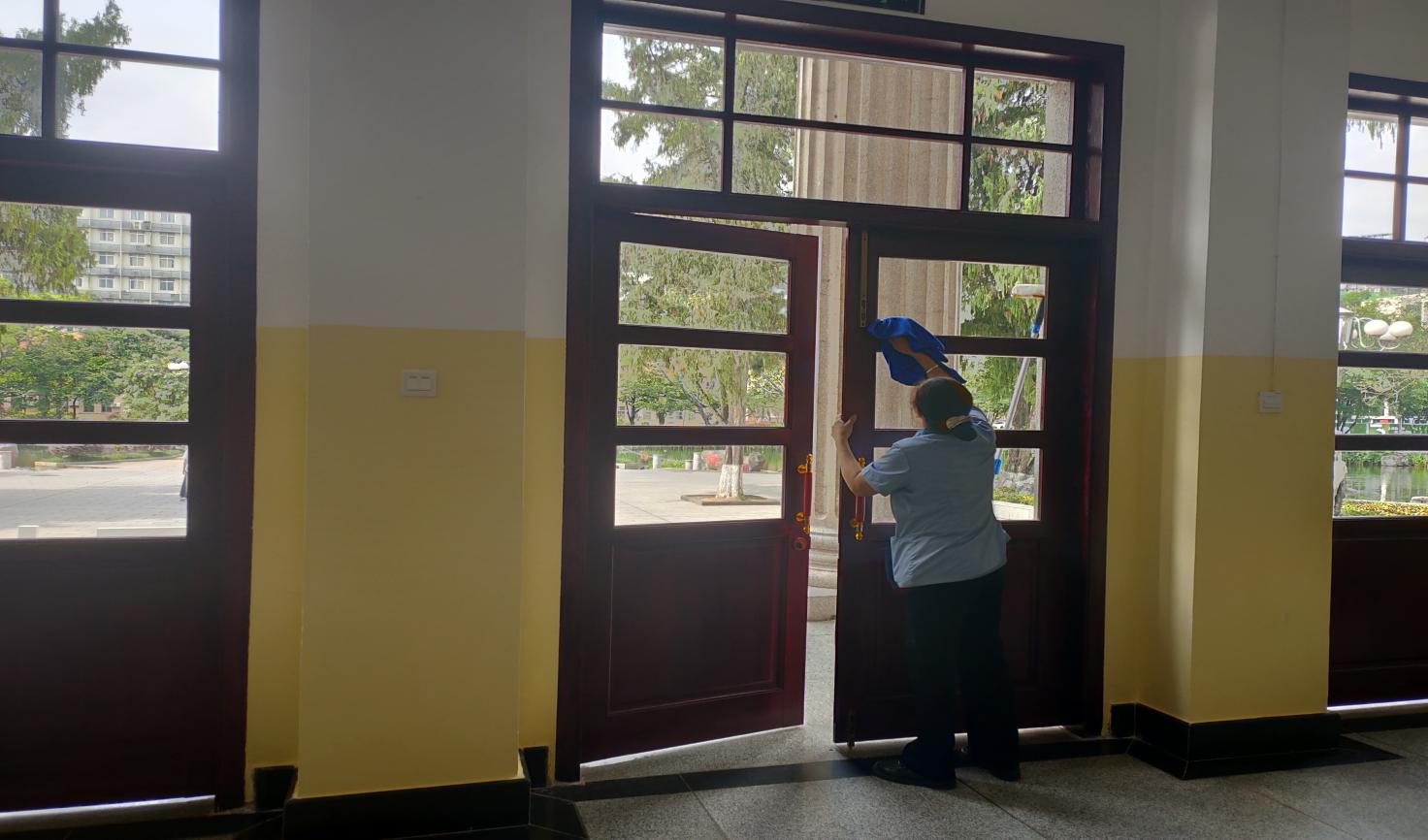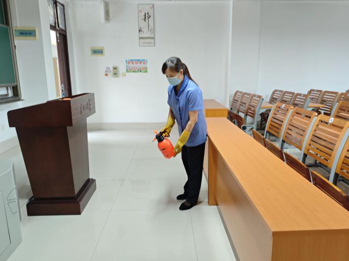 对公共教学楼宇的楼梯、走廊、门把手、课桌椅、电脑键盘、鼠标、水龙头、楼梯扶手、电梯间及按钮等高频接触表面进行重点杀菌消毒564次。