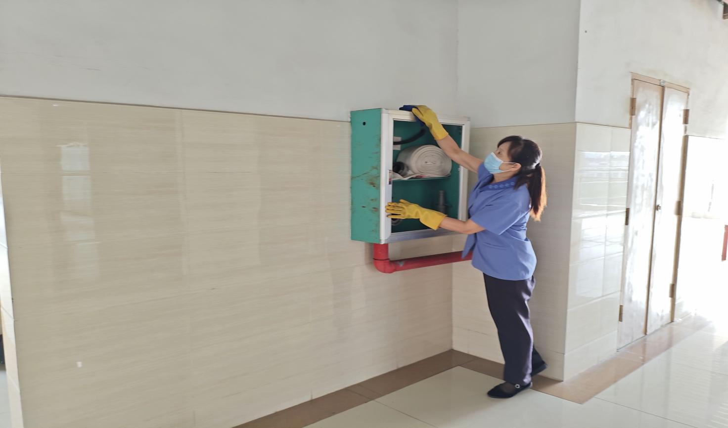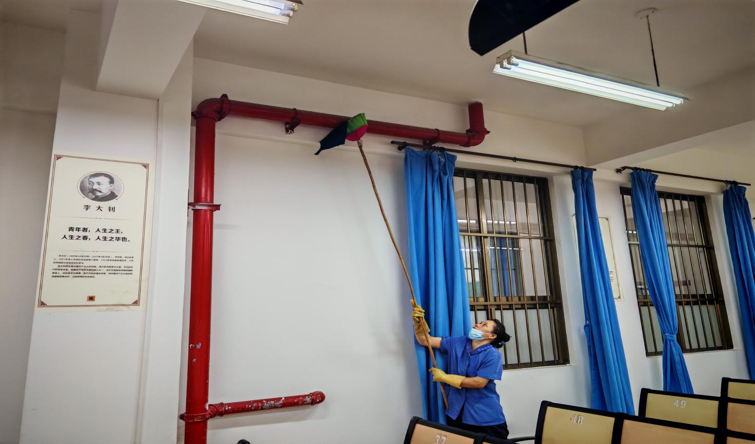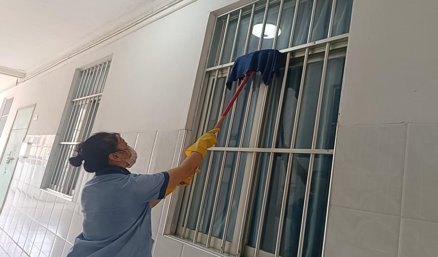 对公共教学楼宇的楼梯、走廊、门把手、课桌椅、电脑键盘、鼠标、水龙头、楼梯扶手、电梯间及按钮等高频接触表面进行重点杀菌消毒564次。